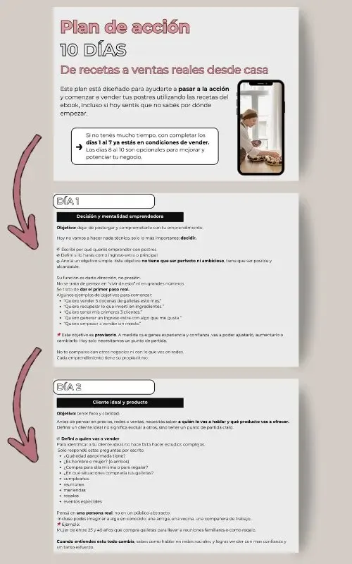Un plan para cada día, pensado para que en solo 10 días pases de tener recetas a salir a vender.